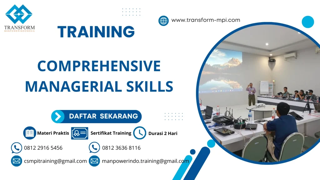 Pelatihan comprehensive managerial skills ini adalah program pelatihan yang dirancang untuk meningkatkan kompetensi manajerial mereka agar dapat mengelola tim dengan lebih efektif. Juga akan dikenalkan berbagai pendekatan dalam leadership.